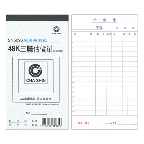 CHA SHIN 加新 2N5096 非碳48K直三聯估價單 95x178mm