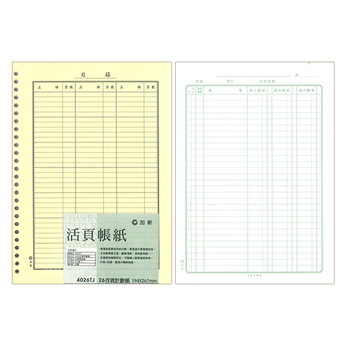 CHA SHIN 加新 4026TJ 26孔存貨計數帳 194×267mm