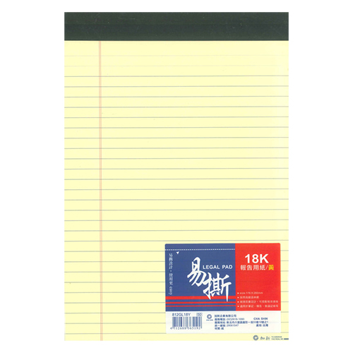 CHA SHIN 加新 812GL18Y B5易撕報告紙(黃) 176x260mm
