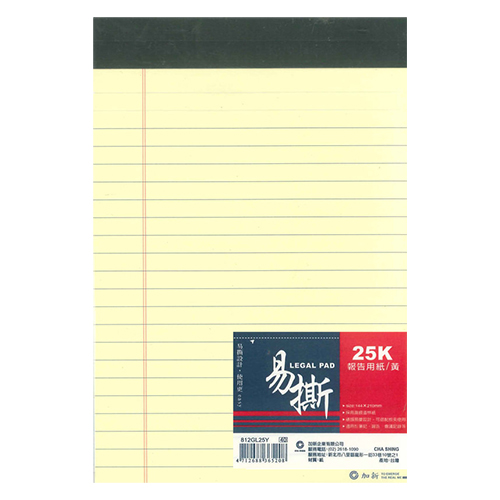 CHA SHIN 加新 812GL25Y 25K易撕報告紙(黃) 144x210mm