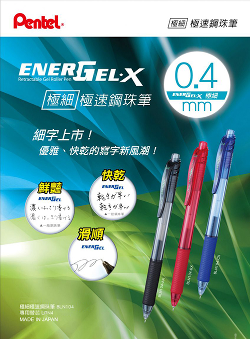 Pentel 飛龍牌 BLN104 極速鋼珠筆 0.4mm 按壓式 ENERGEL.X