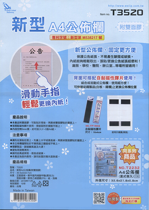 尺寸: 30.5x22x0.7cm▶附背板設計▶保護公告紙張,不易產生皺摺或破損。▶內紙能夠輕鬆取出,張貼/更換公告紙張超便利!▶廠房、學校、醫院、辦公室...等場所皆適用!▶內徑空間3mm寬,約可放入1~2張A4紙。