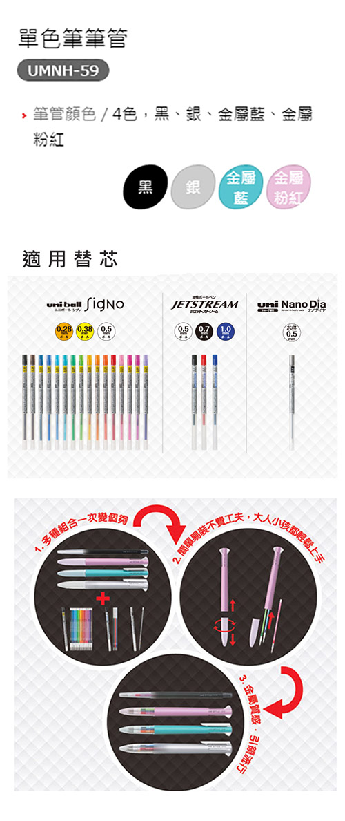 適用筆芯 :Style Fit Jetstream SXR-89-07/SXR-89-10、Style Fit UMR-109-28/UMR-109-38
