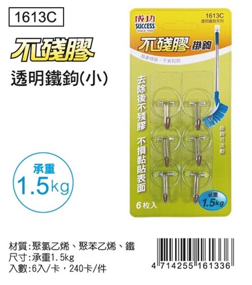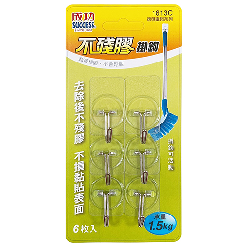 SUCCESS 成功 NO.1613C 不殘膠鐵掛勾小 6個入 約耐重1.5kg