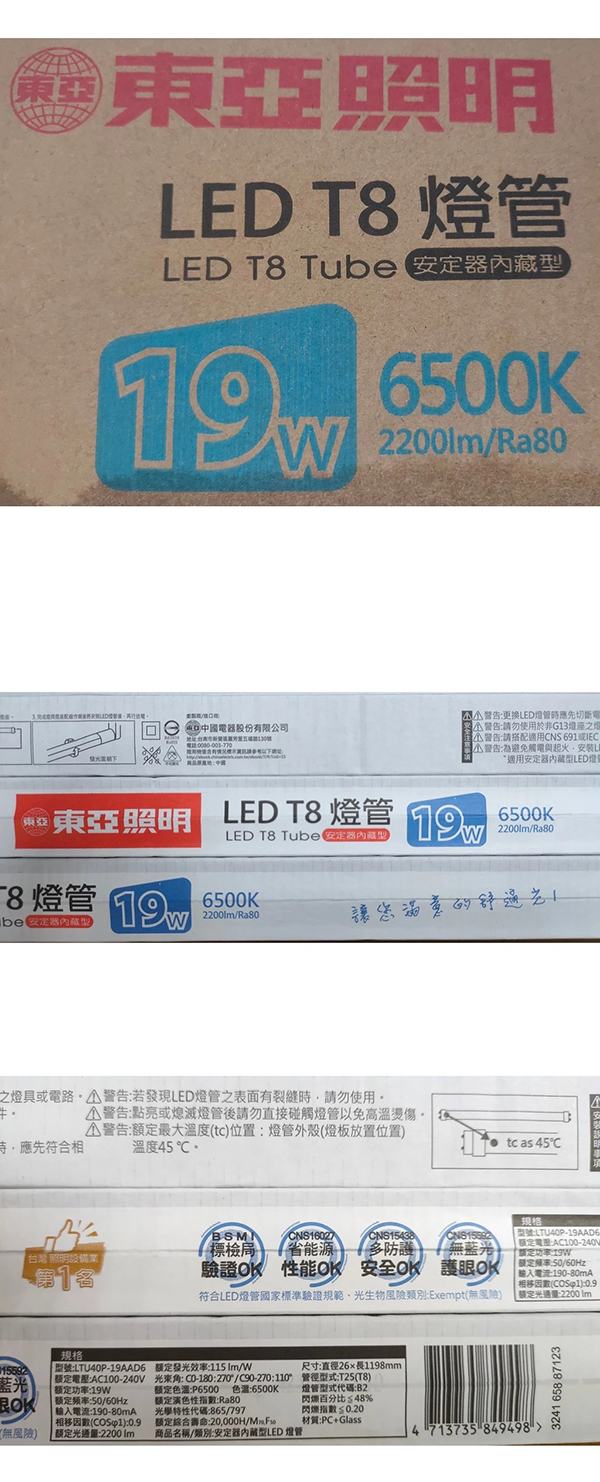 東亞 T8 4尺 19W LED日光燈管白光(整箱20支入)