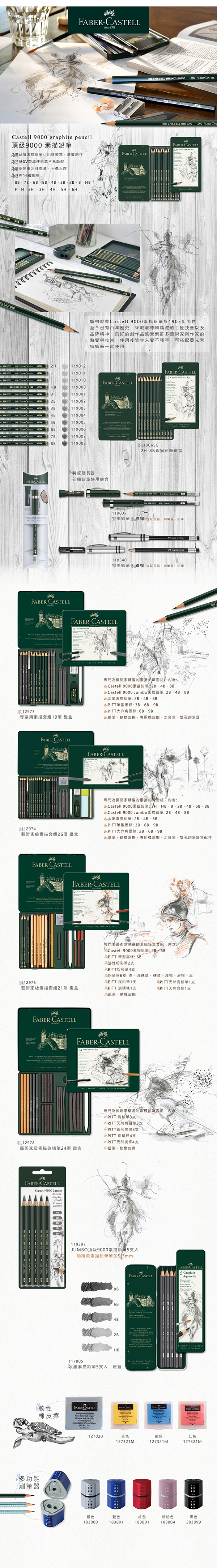 極佳的石墨品質,精密的硬度區分,共16 種不同硬度