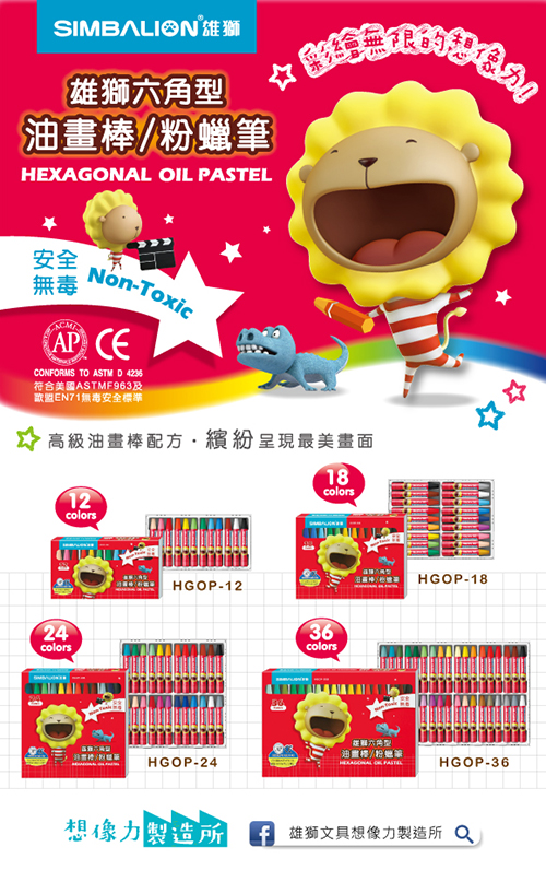 SIMBALION 雄獅 HGOP-24 六角粉蠟筆 24色