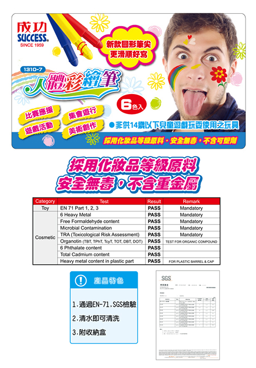 1、人體彩繪用,取下筆套後,可旋轉底部將筆身轉出或收回。