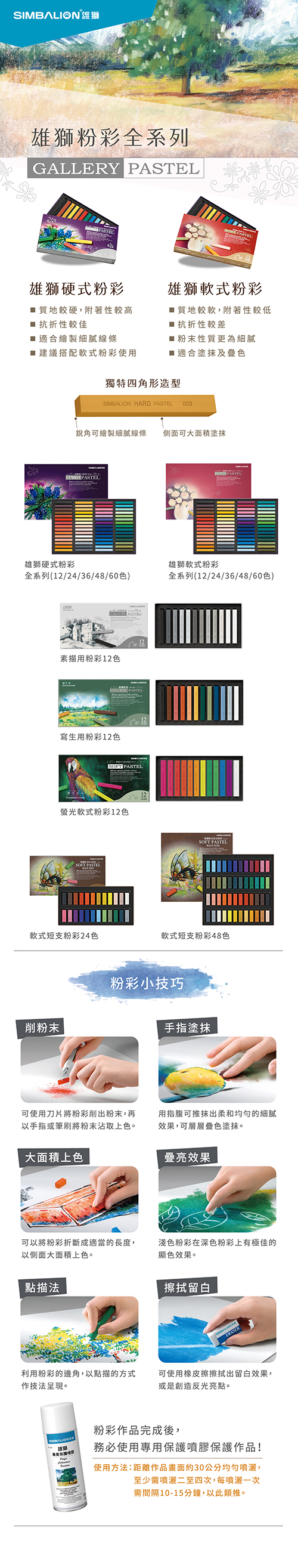 SIMBALION 雄獅 48色軟式短支粉彩筆 HSP-48