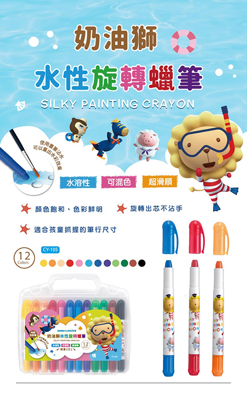 SIMBALION 雄獅 CY-105 12色水性旋轉蠟筆