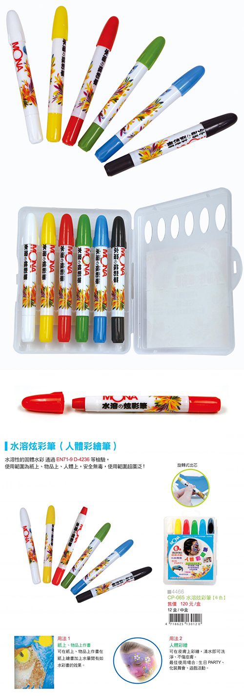 Tomato 萬事捷 CP-065 水溶炫彩筆(人體彩繪筆) 6色組