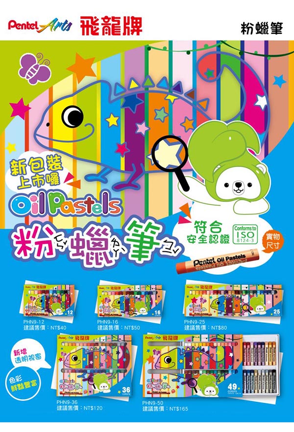 Pentel 飛龍牌 PHN9-50 一般粉蠟筆系列 50色