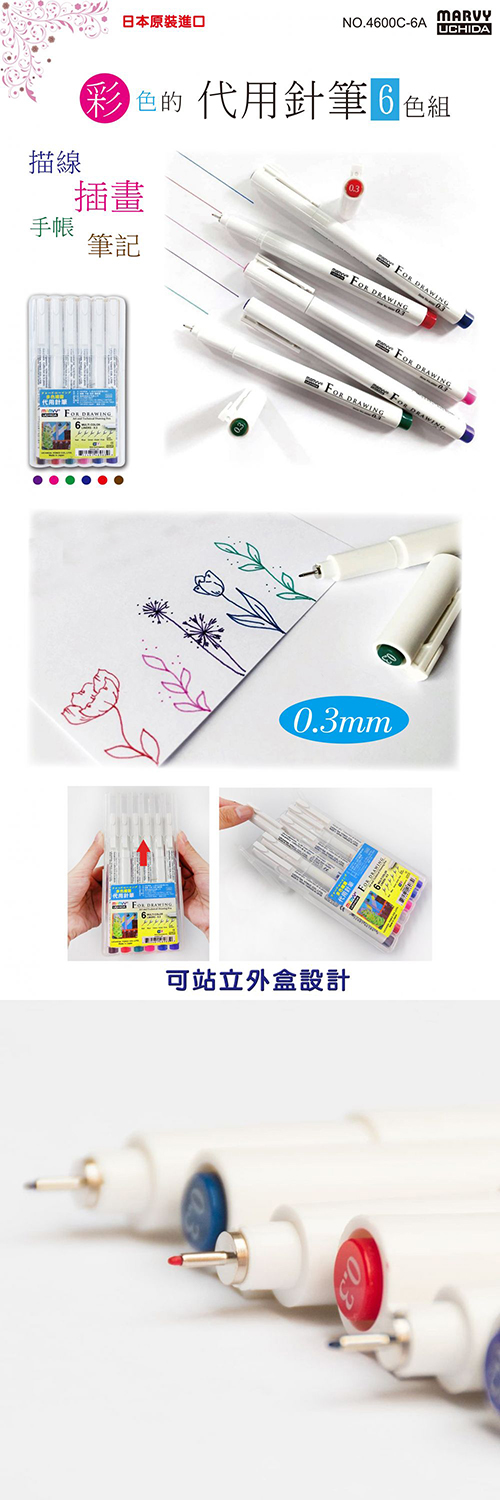 UCHIDA 4600C-6A 多色耐水性代針筆/代用針筆6色組 40241-06(筆尖0.03)