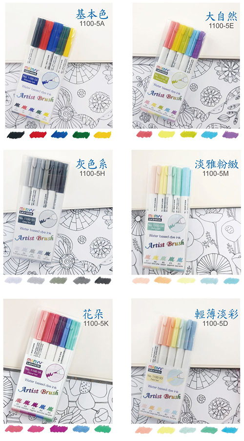 特色:* 水性.毛筆頭.畫法多樣.可隨意勾線、平塗、漸層、疊色!* 透過彩繪漫畫筆運用豐富色調和筆觸, 只要改變著色的力道方法或重疊塗色, 就可以做出各種不同的變化也可繪出細膩手感的類水彩畫作* 可搭配任何色做出打淡、漸層的效果