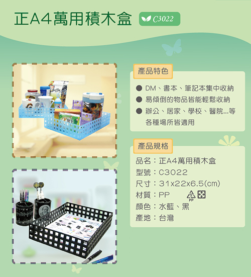 C3022 正A4萬用積木盒/收納藍/收納盒 31x22x6.5cm