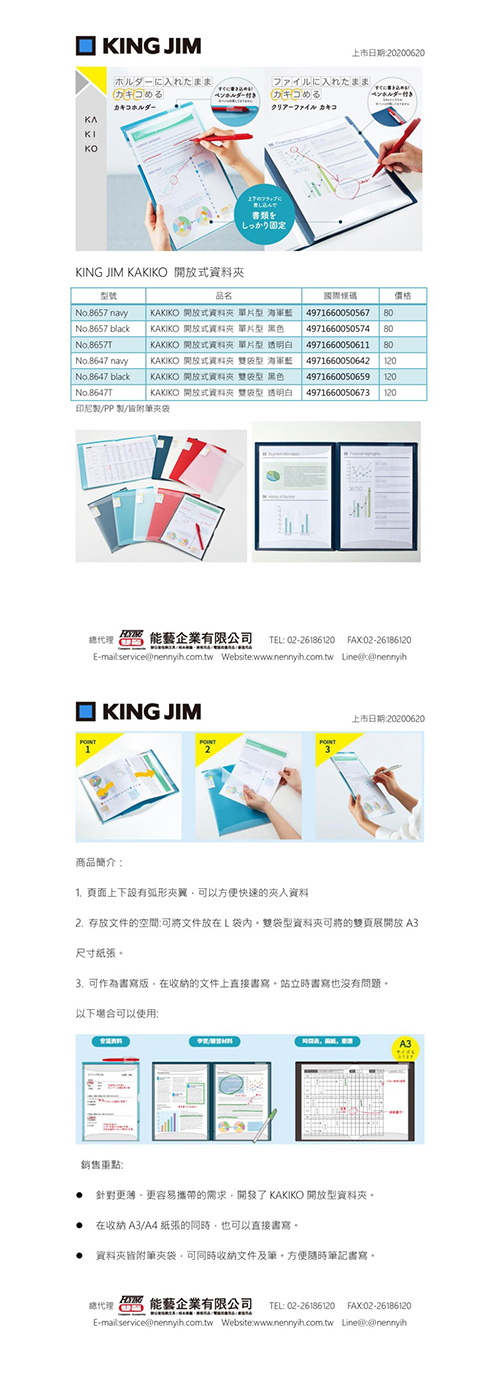 KAKIKO A4開放式資料夾(透明白) NO.8657T 單片型 文件夾/公文夾/文件套