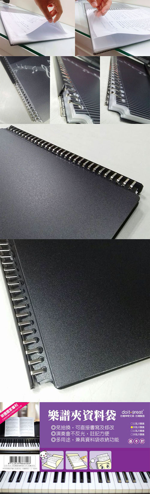 EZ11-MB20 A4 30孔樂譜夾資料簿20張入黑色大音符