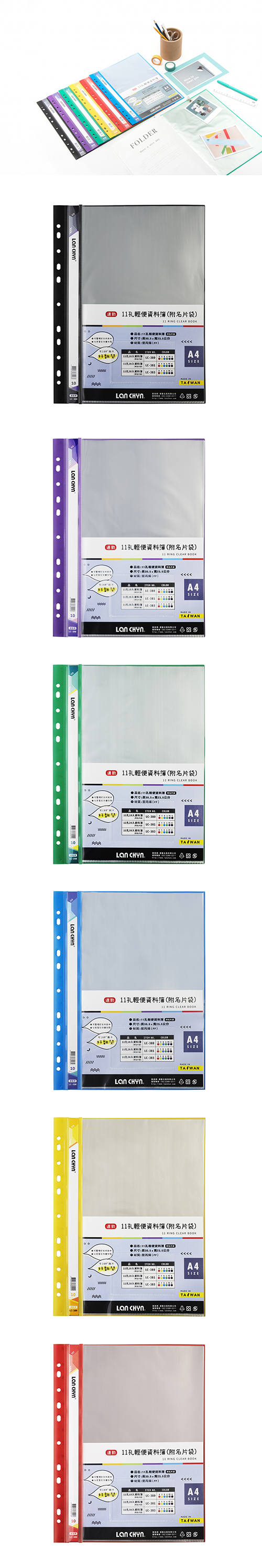 • 11孔10入輕便資料簿,可套用二、三、四孔夾