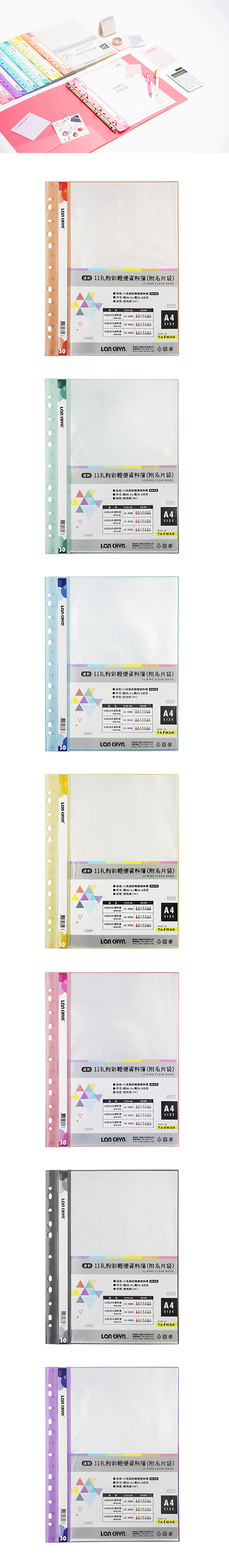 • 11孔30入輕便資料簿,可套用二、三、四孔夾