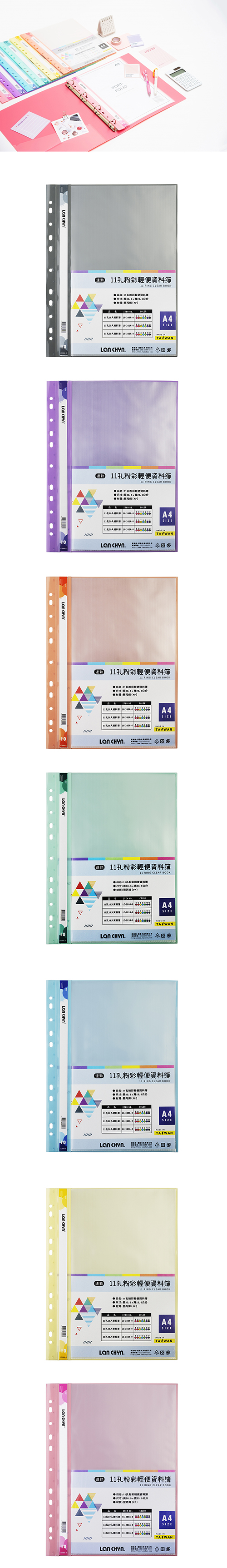 • 11孔10入輕便資料簿,可套用二、三、四孔夾
