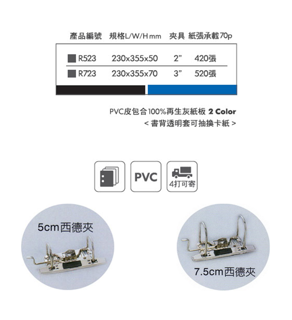 REGINA 立強牌 R723 A4橫式二孔拱型夾 23x35.5x7cm