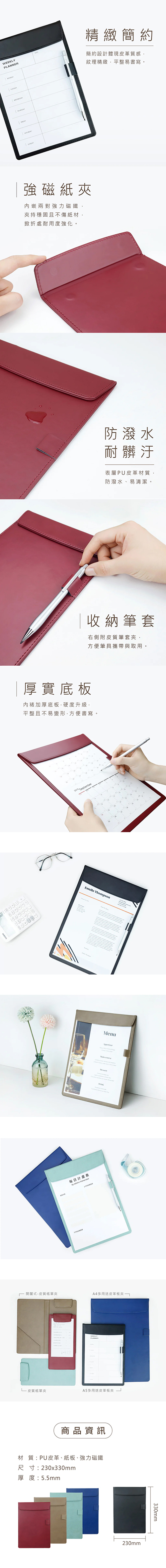 商品編號 66248尺寸 : 165×235×4mm材質 : PU皮革、 紙板.強力磁鐵其他說明 : 精緻皮革紋理.防潑水.易清潔.厚實底板好書寫 若需指定顏色、可先詢問庫存數量是否足夠.如需訂貨約等候1~3天方可出貨(不含例假日)。
