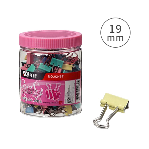 SDI 手牌順德 彩色長尾夾 19mm 144支入桶裝 NO. 0246T