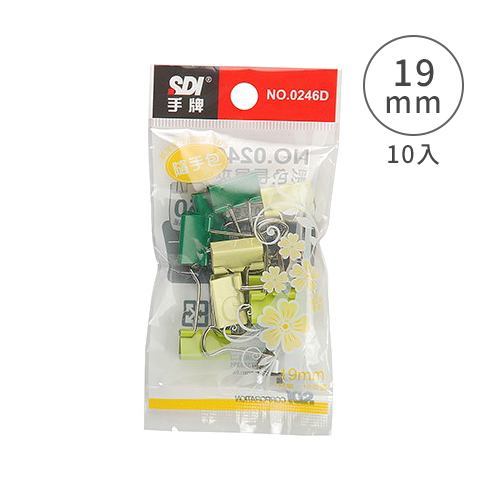 SDI 手牌順德 彩色長尾夾 隨手包 19mm 10支入袋裝 NO.0246D