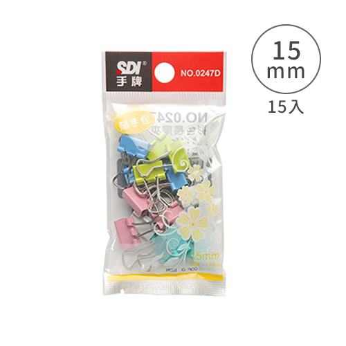 SDI 手牌順德 彩色長尾夾 隨手包 15mm 15支入袋裝 NO.0247D