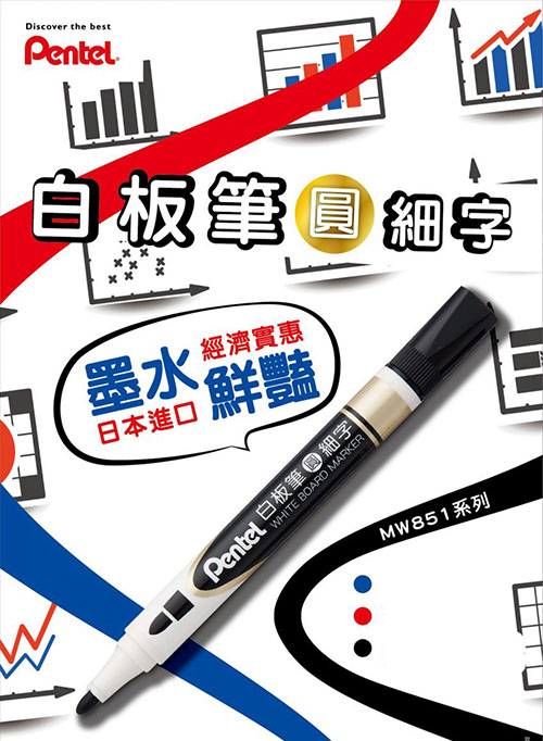 Pentel 飛龍牌 MW851 圓頭細字白板筆 1.5mm