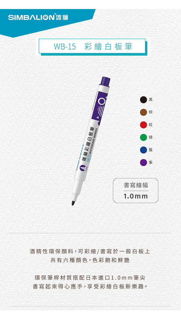 SIMBALION 雄獅 WB-15小支彩繪白板筆