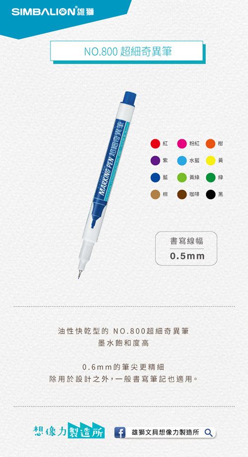SIMBALION 雄獅 NO.800 超細奇異筆 0.5mm 油性 8色組 NO.808